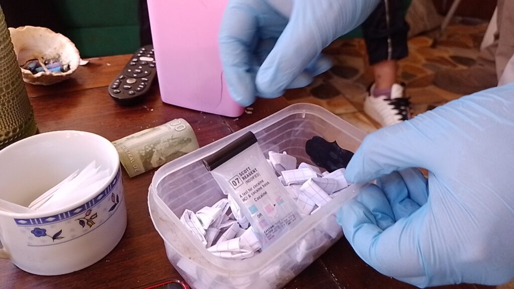 “Con la autorización judicial para la entrada y registro del domicilio, los detectives de nuestro territorio y la fiscalía de Ovalle planifican la intervención, incautando diversas drogas dosificadas en papeles y envoltorios plásticos. En resumen, retiraron de circulación más de 180 dosis de sustancias ilegales, como clorhidrato de cocaína, ketamina y cocaína base, además de recuperar 700 mil pesos en dinero en efectivo y otras especies de interés criminalístico”, informó el subprefecto Augusto Frias, jefe de la Brigada Antinarcóticos y Contra el Crimen Organizado Los Vilos.