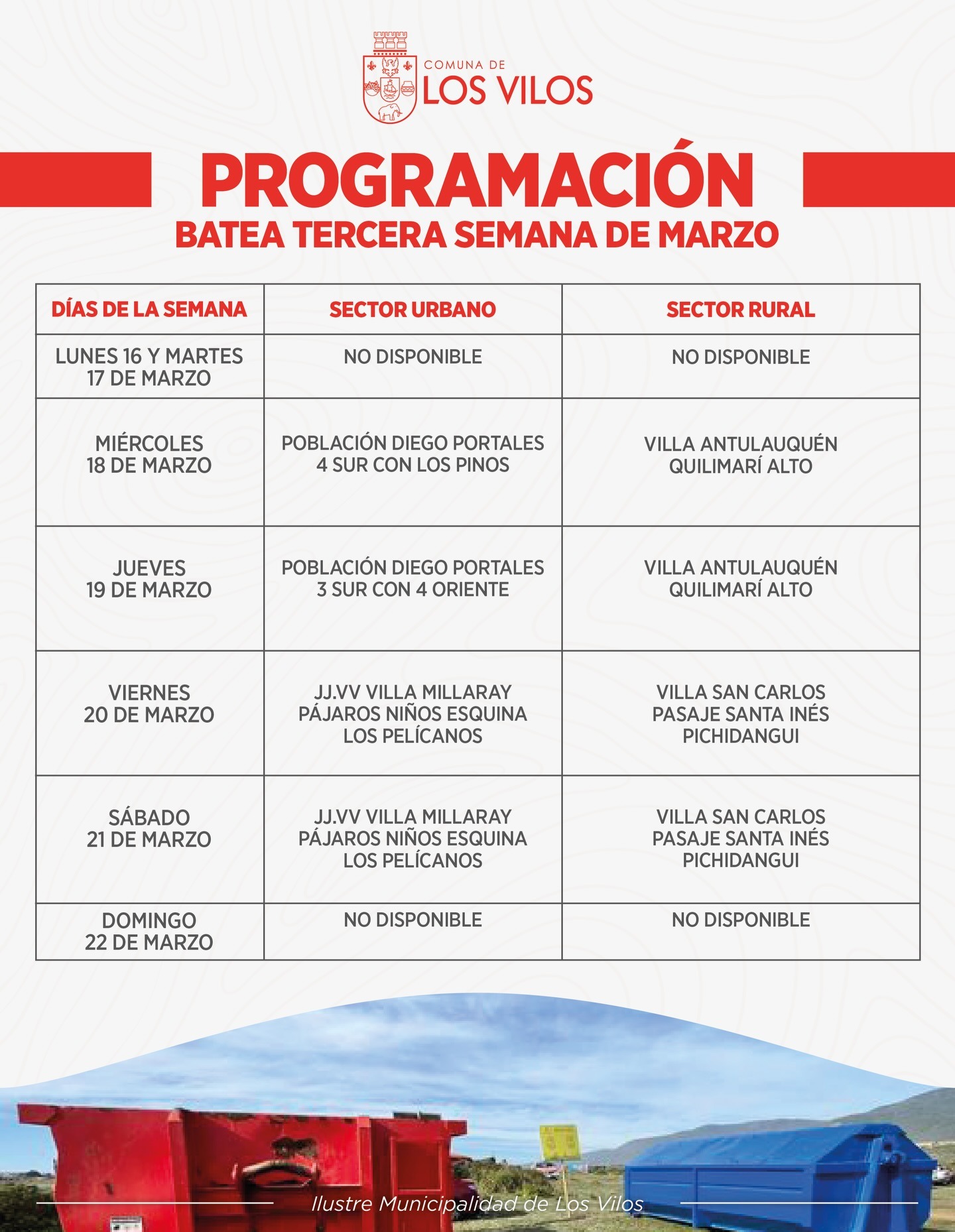 Municipio de Los Vilos entrega programación semanal de retiro de basura para sectores urbanos y rurales