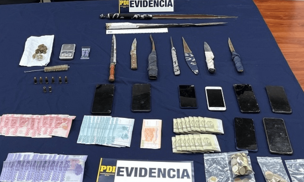 PDI de Los Vilos desarticula conocida banda local incautando armas, drogas, equipos móviles y dinero en efectivo